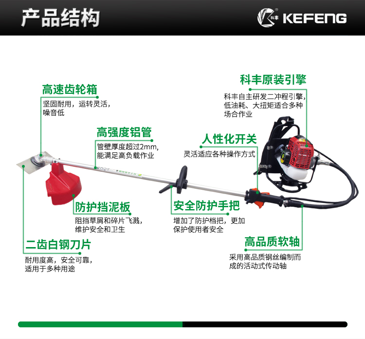 ■ 科豐二沖程引擎,低油耗,大扭矩適合多數(shù)場(chǎng)合作業(yè)。