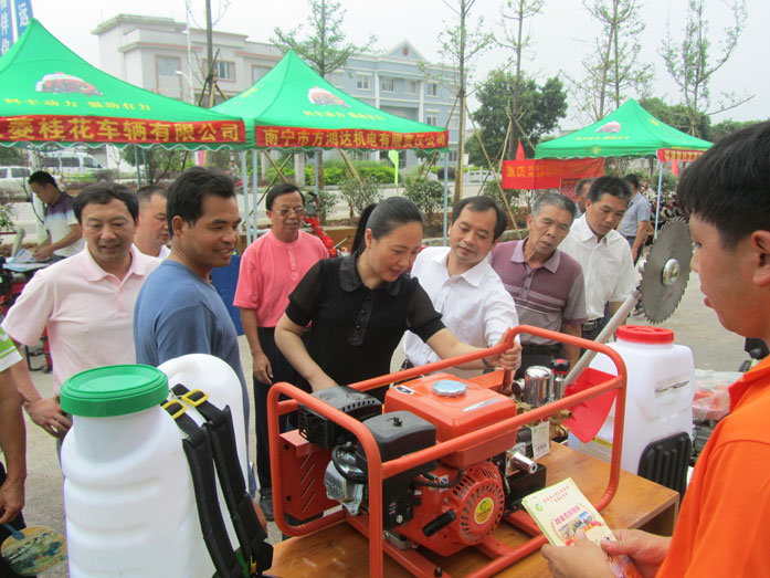 5月5日上午,2012年全國科技活動周廣西農(nóng)機化管理局小型適用農(nóng)機具巡回展示與技術(shù)培訓(xùn)啟動儀式在融安縣隆重舉行,為巡回系列活動拉開了序幕。此次活動領(lǐng)導(dǎo)相當(dāng)重視,廣西農(nóng)機化管理局、科教處、廣西農(nóng)機鑒定站、廣西農(nóng)機化技術(shù)推廣總站,柳州市農(nóng)機局,融安縣委常委、宣傳部、人民政府、縣人大,縣人民政府、縣政協(xié)等等領(lǐng)導(dǎo)出席了啟動儀式,期間我公司參展的農(nóng)機得到了出席領(lǐng)導(dǎo)的特別關(guān)注和認(rèn)可,同時現(xiàn)場民眾對科豐牌農(nóng)機也有強烈的購買興趣及意愿紛紛圍觀咨詢…….