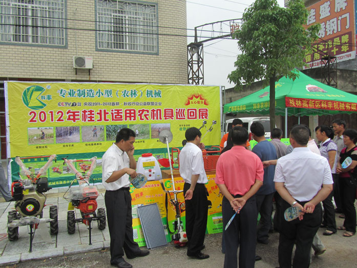 桂林科豐于2012年5月5-15日攜“科豐牌” 4G-25多功能小型收割、4G-25割草機、4型多功能微耕機、6型多功能微耕機、挖坑機、油據(jù)等小型機具參加 “廣西小型適用農(nóng)機具巡回展示與技術(shù)培訓(xùn)活動”。